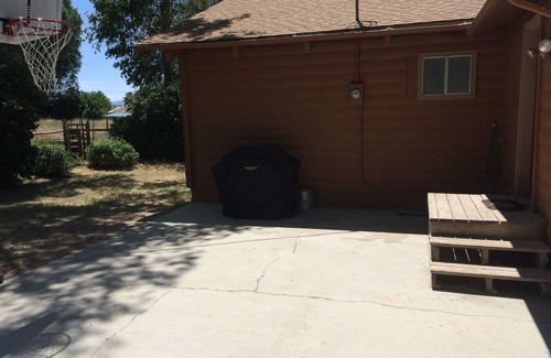 This Cabin is located in Lyman Utah, a quaint little town located between Capitol Reef and Fish Lake. With over 2300 square feet and a fenced in yard, with enough room for 10 people to stay. There are numerous fruit trees and other large trees in the yard that provides shade on a hot day. This cabin has an upstairs and downstairs with 5 bedrooms and three bathrooms. The main level has a large beautiful kitchen and is stocked with your basic cooking needs. The master bedroom has a queen bed and its own bathroom with a tub and stand in shower. In addition to the kitchen and master bedroom the upstairs has a large living room with high ceilings, two more bedrooms and a bathroom. Down stairs you will find a family room/game room with two more bedrooms and a bathroom with a walk in shower. Downstairs is a washer and dryer for your use. There is also an outdoor fire pit for a relaxing evening outside. If you have horses and need a place to keep them, there is a small pasture next to the cabin that can be used upon request. We have a TV with a few Stations and a DVD player. There is also wi-fi access.